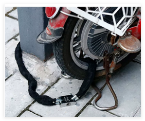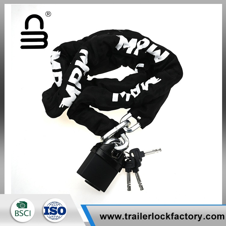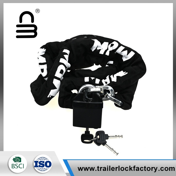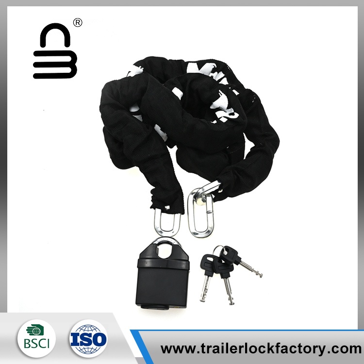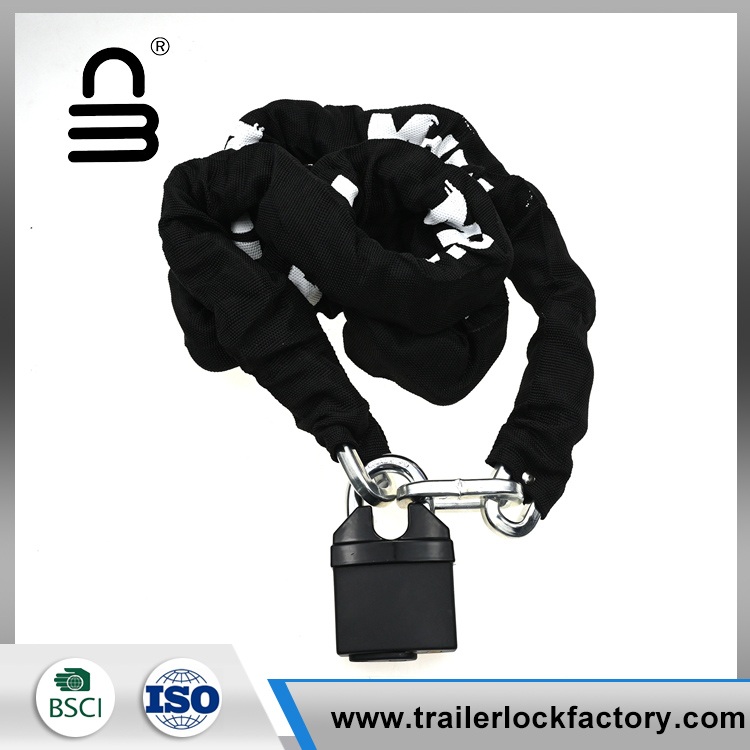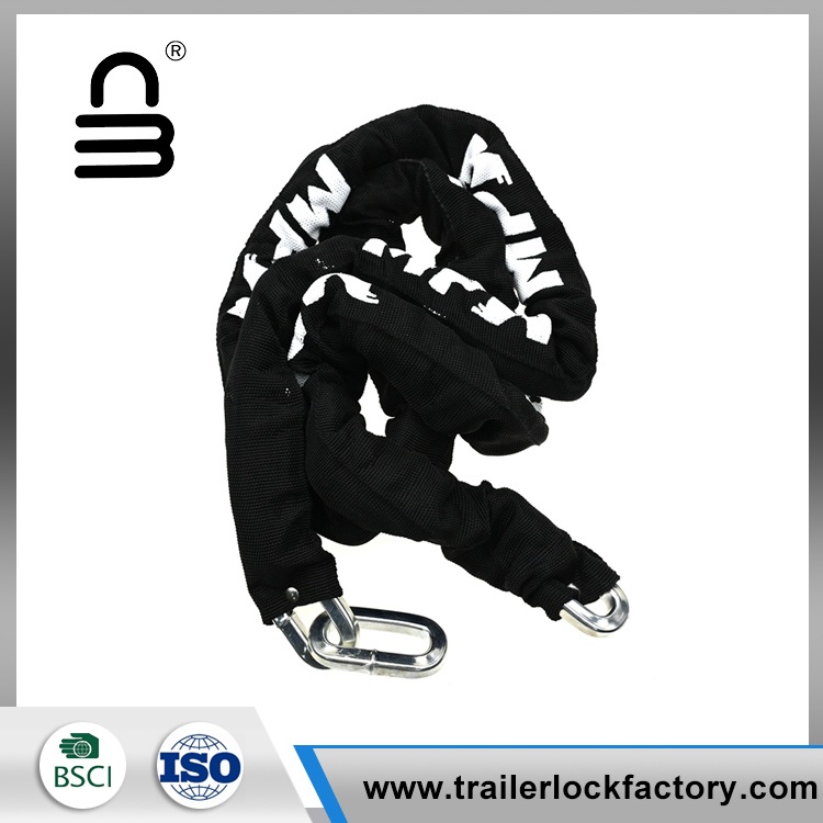 Naarmujen estämiseksi ja pitkäikäisyyden parantamiseksi pyöräketjun lukitus on peitetty kovalla, kulutuskangasholkilla. Lisävarusteena pyöräketjulukko on varustettu U-muotoisella lukitusmekanismilla, joka tunnetaan myös nimellä U-lukkikoukku, joka tarjoaa luotettavan ja turvallisen kiinnitysmenetelmän.