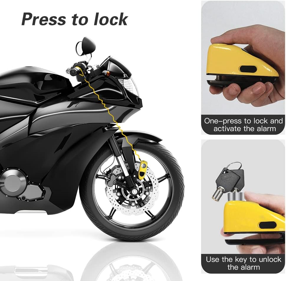 · Helppo käyttää: Moottoripyörän antift-lukot voidaan helposti lukita painamalla hälytyspainiketta. Lukitus siirtyy heti hälytystilaan ja kuulet piippauksen. Helppo lukitusprosessi.