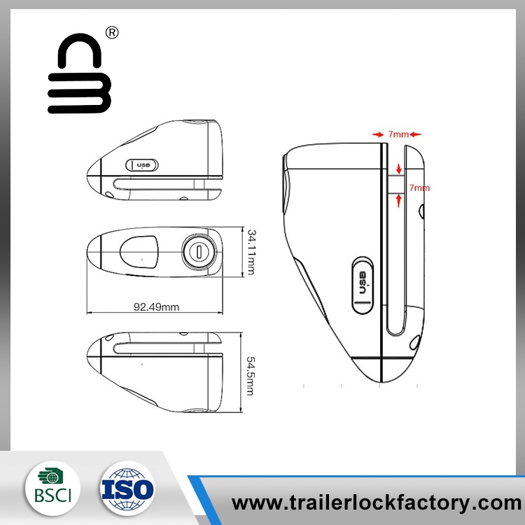 · Tukkas materiaali: Tämä moottoripyörän hälytysjarrulukko on valmistettu tukevasta alumiiniseoksesta, vedenpitävästä, korkean lämpötilan kestävästä ja pölynpitävästä. Sen palveluelämä vastaa odotettua palveluelämää.